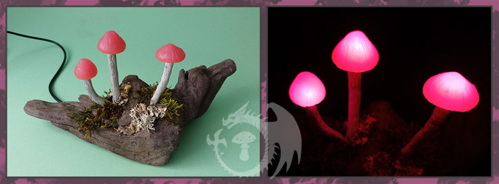 Die Pilz-Lämpchen eignen sich als Stimmungsleuchten und geben jedem Heim das mystische Etwas. Einige der Lampen sind zum Kaufen (siehe weiter unten), bei Interesse einfach eine Mail schreiben.