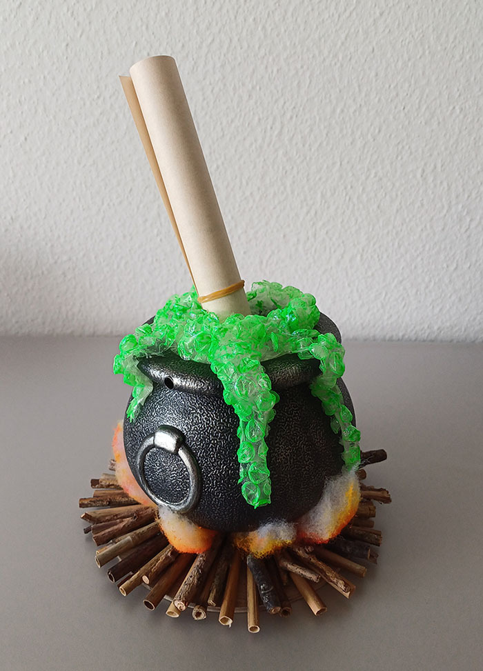 Ein Essensgutschein der speziellen Sorte wollte auch speziell präsentiert werden. Das Restaurant hiess «Der Hexer» und so wurde eine passende Umverpackung erstellt. Der Kessel ist etwa 15cm hoch und wurde liebevoll verziert und auf eine Feuerstelle geklebt. Ich gebe mir alle Mühe, eure Wünsche umzusetzen. Preis nach Absprache, je nach Material und Aufwand unterschiedlich.